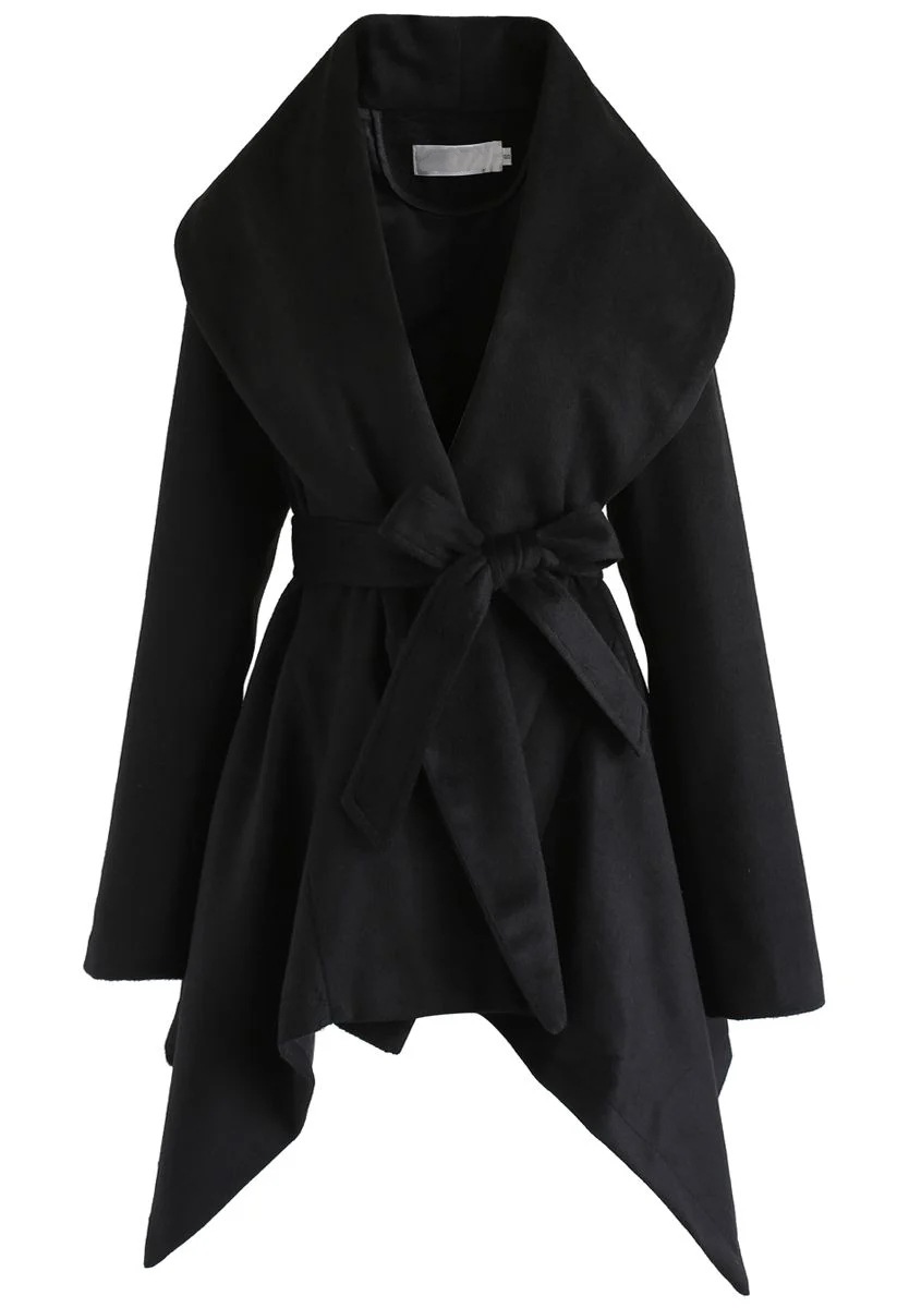 Manteau en laine ceinturé à col cape